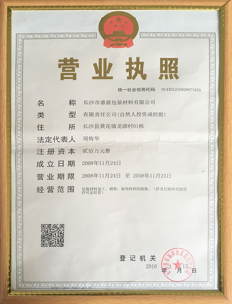 長(zhǎng)沙市嘉晨包裝材料有限公司是一家集研發(fā)、生產(chǎn)、銷售為一體的專業(yè)生產(chǎn)包裝材料的企業(yè)。